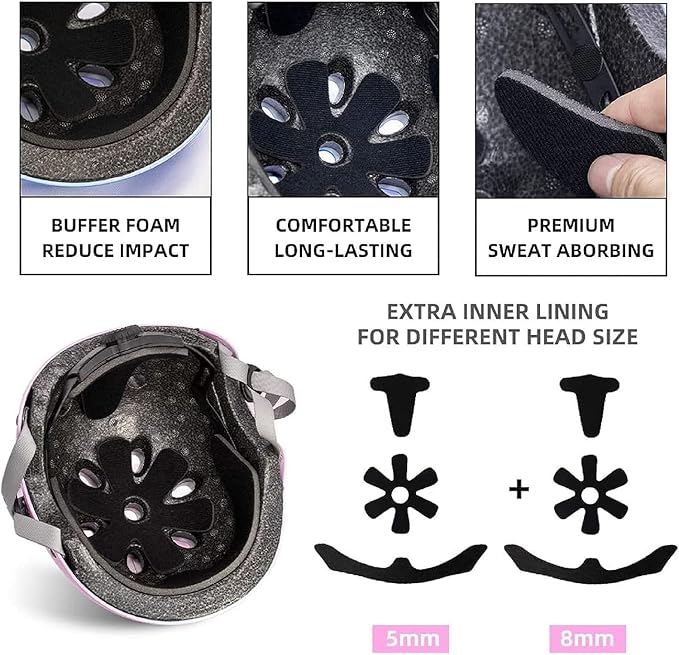 • 【Kids Helmet for Multi-Sports 】Provide Protection for Skateboarding ,Roller skating ,Inline skating ,Scooter ,Biking ,Longboard ,Rollerblading ,Hoverboard ,Street dance,Balance bike,Cycling, etc.Adjustable toddler helmet size to accompany kids' growth, It is a perfect gift for boys and girls