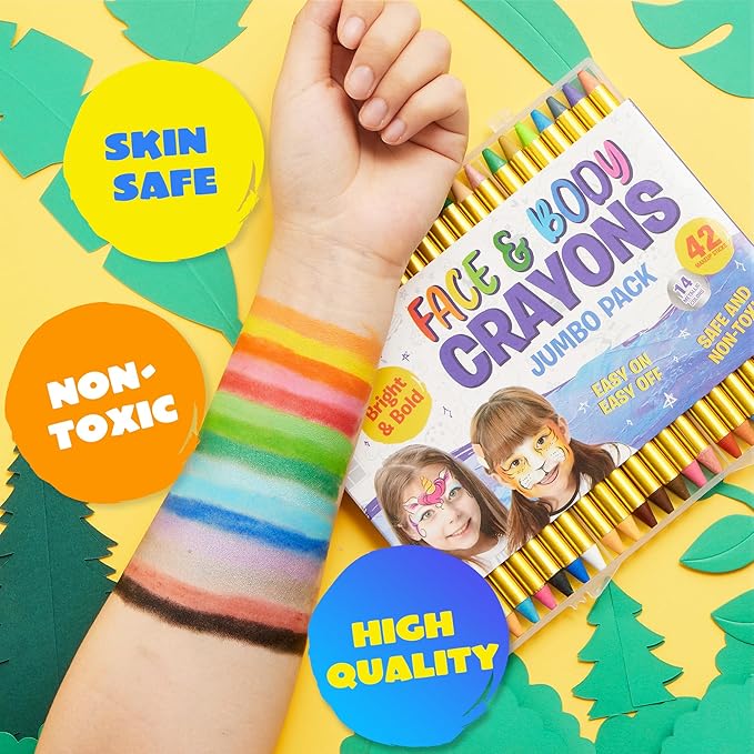 • ENDLESS FUN: This Face and Body Crayon provides a colorful and exciting party time with the family! Perfect for Birthday Makeup Party Supplies, Festivals, Birthday Parties, Party Favors, Cosplay, Football Events, Prime Sport, Masquerades, or Kids Playing Pretend Play in Beauty Salon and Stage Play Face Makeups.