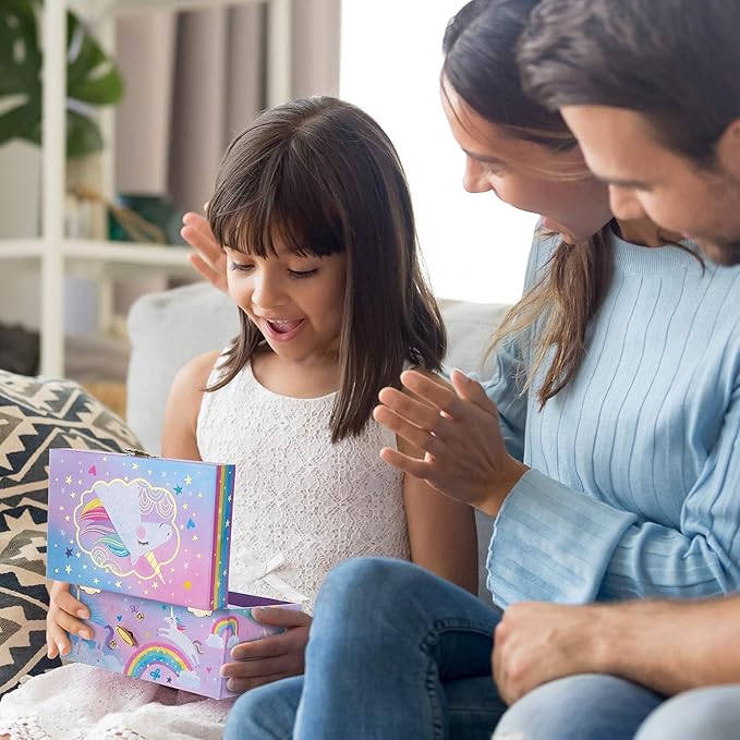 • ⭐ Quality Parents Can Trust - Crafted with durable pine fiberboard material and a stylish gold-tone latch, our kids jewelry box is heavy and durable – so your gift is guaranteed to last! Rigorously tested for safety, each girls jewelry box meets CPSIA, ASTM and EN71 guidelines, ensuring your little ones are safe and in good hands.