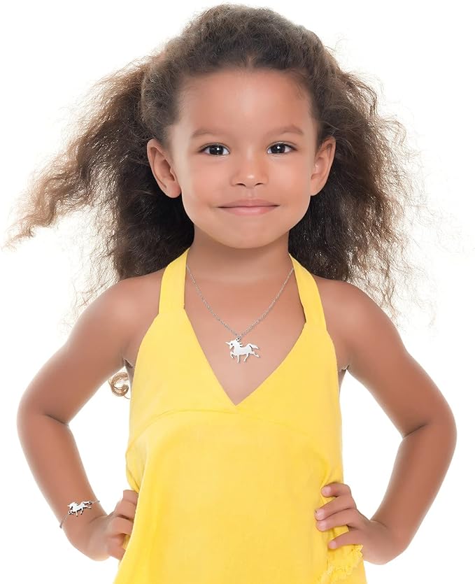 • ⭐ Unlike others, you’ll get 3 gifts in 1 box, including a beautiful Unicorn Music Box, plus a charming Unicorn bracelet and a matching girl's necklace. With the little girls jewelry set neatly packaged inside, you won’t have to keep looking for something else or gift an empty box. The girls bracelet and Unicorn necklace pendant have fully adjustable links and are made of 100% nickel-free stainless steel.