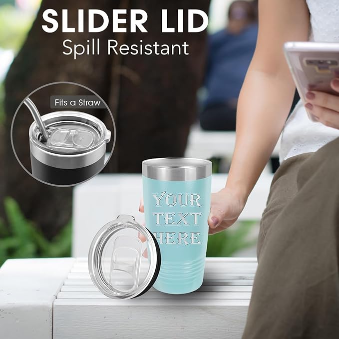 Personalized Tumbler, Custom Travel Coffee Mug, Laser Engraved Insulated Double Wall Stainless Steel Coffee Mug, Gift for Her, Closing Lid Included (Light Blue, 20oz)