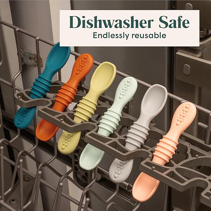 • The Perfect Size for Little Hands - A ribbed handle means your child can comfortably grip this silicone baby spoon as they learn to eat. There’s also a textured end that’s gentle on teething gums.