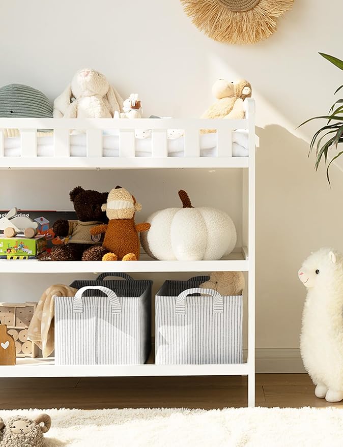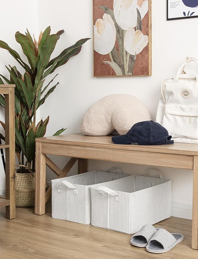 StorageWorks Storage Bins, Fabric Storage Bins for Shelves, Storage Baskets with Metal Frame, Closet Baskets and Bins with Handles, Gray and White Stripes, 2-Pack
