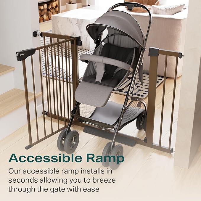 • 【Large & wide】30.5 Inch height & 29.7-46 Inch width, This Brown gate is suitable for most doors! Our large walk thru gate makes it easier to walk when holding the baby. Great choice for new parents