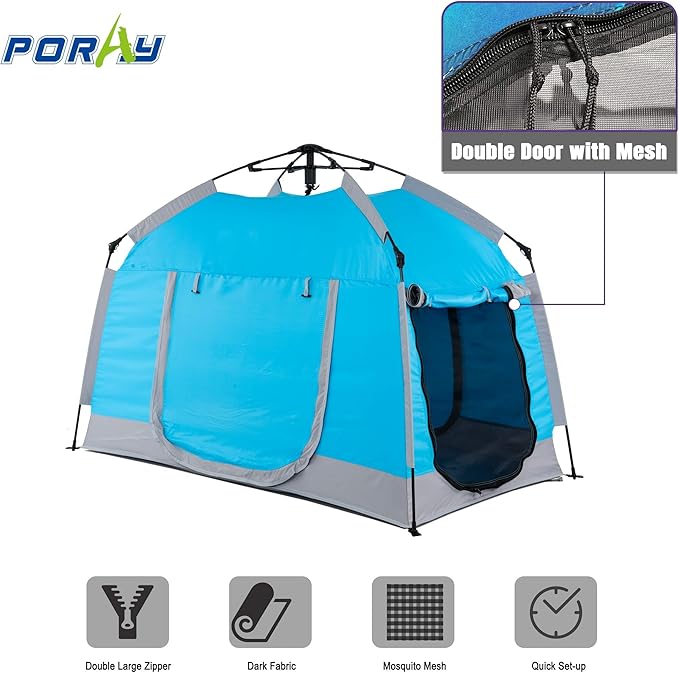 • Unique design-The unique wheel hub design makes it only take 3 seconds to open the tent and the setup can be completed with a simple pull. The beautiful three-color LED lighting adds more sensory elements to the tent. This kids tent has 3 zip doors and 2 zip windows. The windows are screened ,and it is very roomy which ensures the ventilation and fun.