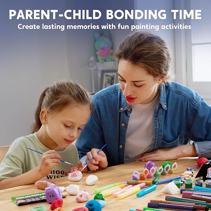 • Complete Crafting Experience: Whether you're a beginner or an experienced rock painter, the Glow-in-the-Dark Rock Painting Kit has something for you. The fine-tip paintbrush is great for precise lines, while the wider brush is perfect for larger areas. With the included transfer stickers, kids can get creative and add their personal touch to their rocks.