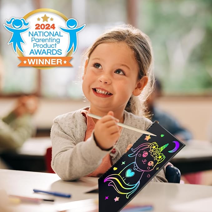 • 2. Fun Art Gifts for Kids: Our magic scratch off notebook is made of thick paper, no paint. An ideal educational toy for girls & boys learning to draw. Perfect travel toys art activities gifts for 3 4 5 6 year old girls boys