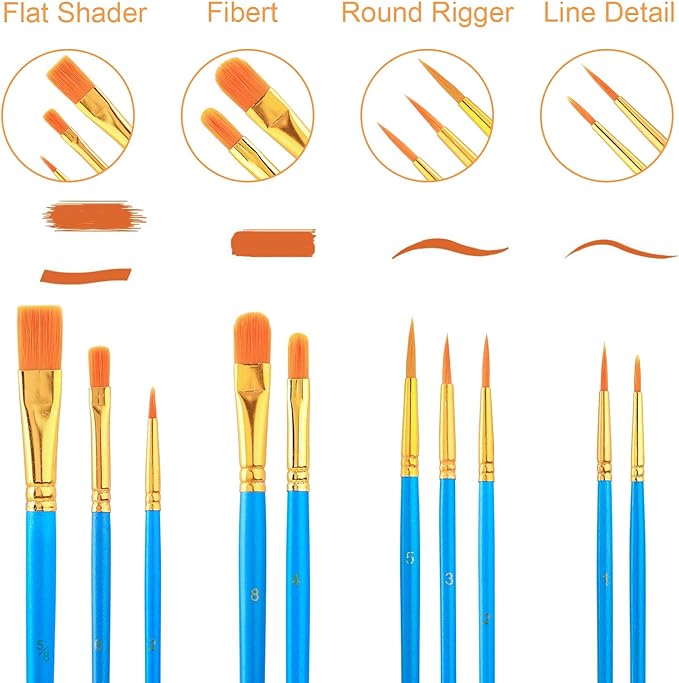 • 【BRUSH PENS】:10 sizes versatile paintbrushes set and 6 sizes refillable water brush pen with a variety of shapes make mixing color easier. After using the brushes, it’s very convenient to clean them with warm soapy water and reshape the brush tips. Air-dry the brushes and store them in a dry place for long time of use.