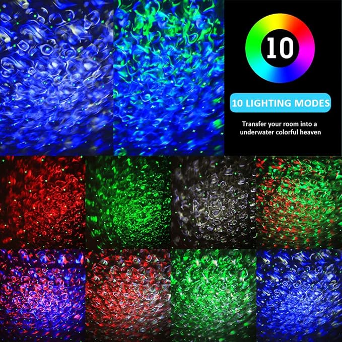 • 【10 Lighting Modes】Multiple lighting modes combined with dynamic night ocean projections at different speeds, creating a relaxed, romantic and colorful space projection atmosphere. Starry Projector with adjustable brightness, multiple ocean wave colors and star twinkled modes to easily achieve your dream underwater room.