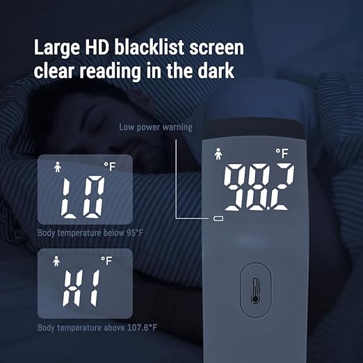 • Multifunctional: The temporal thermometer is designed for all ages, adults, babies, and elders. In addition to measuring the forehead, it can also measure the room, object, and liquids temperature. A great choice for families, nurseries, hotels, school