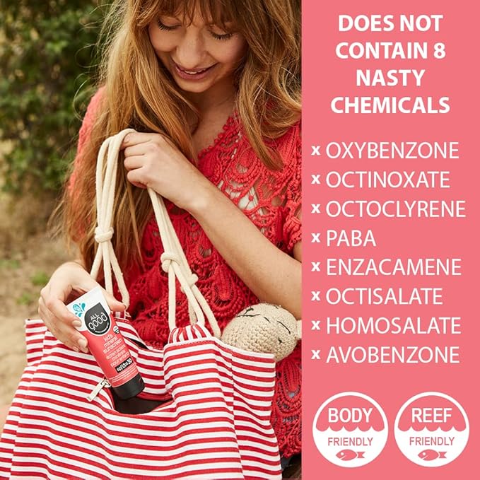 • CORAL REEF FRIENDLY AND NO HARMFUL ADDITIVES: All of our All Good reef-friendly suncare products meet broad-spectrum standards and reef-friendly criteria. Our ingredients do not include chemical UV absorbers, parabens or harmful additives (and especially no octinoxate, oxybenzone, and the other chemicals in the “Awful Eight”).