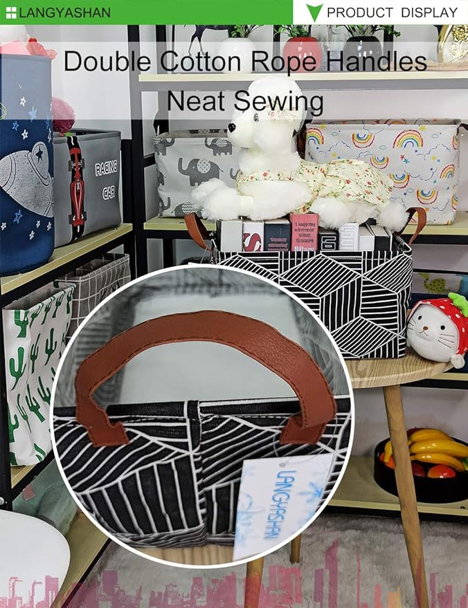 LANGYASHAN Rectangular Storage Bin Collapse Canvas Fabric Cartoon Storage Basket with Handles for Organizing Home Kitchen Boys and Girls Toys Office Closet Shelf Baskets (Black Diamond)