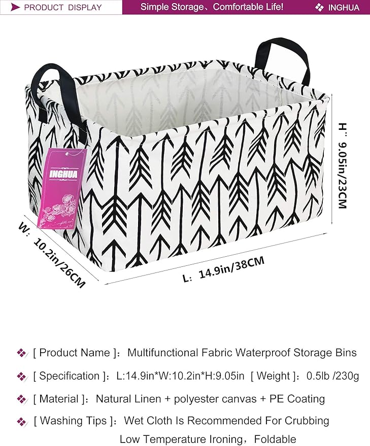 Rectangular Storage Basket Fabric Organizer Bin for Toys,Books,Clothes,Gifts,Pets-Perfect for Home,Office,Nursery,Dorm,Shelf(Rec Black Arrows)