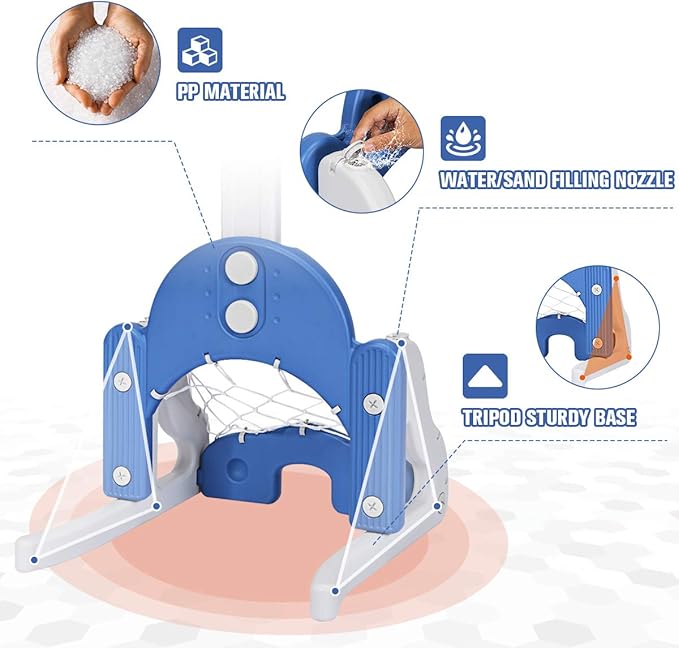 • 【Stable Triangle Structure】 Triangular structure base effectively increases the stability of the entire basketball hoop and can prevent children from being injured. In addition, There is a piston on the base of the basketball hoop. After opening it, you can fill water or sand to increase the stability of the base.