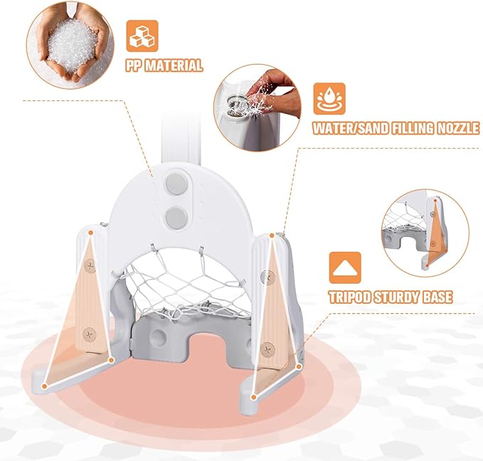 • 【Stable Triangle Structure】 Triangular structure base effectively increases the stability of the entire basketball hoop and can prevent children from being injured. In addition, There is a piston on the base of the basketball hoop. After opening it, you can fill water or sand to increase the stability of the base.