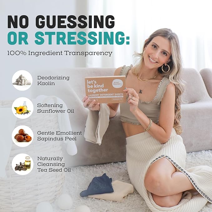 • Provides Strong Cleaning Power - Tackle tough stains with Kind Laundry’s ultra-concentrated laundry detergent sheets! Our laundry sheet is made with a proprietary formula of tea seed oil and powerful plant-based surfactants–no unnecessary fillers and harmful chemicals included.
