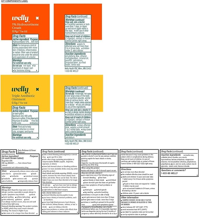 Welly First Aid Kit - Adhesive Flexible Fabric and Waterproof Bandages, Tape and Non-Stick Pads, Butterfly Strips, Single Use Ointments Triple Antibiotic and Hydrocortisone, and Ibuprofen - 130 Count