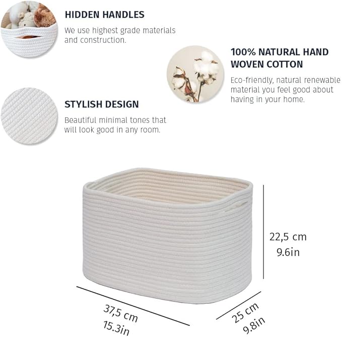 • Elegant Cotton Coiled Rope Cubes Design – A vintage feel with a modern touch these coiled rope baskets are made from tightly-woven cotton that’s strong, and more durable and resistant than regular wicker storage basket, linen closet organizers and storage baskets with lid.