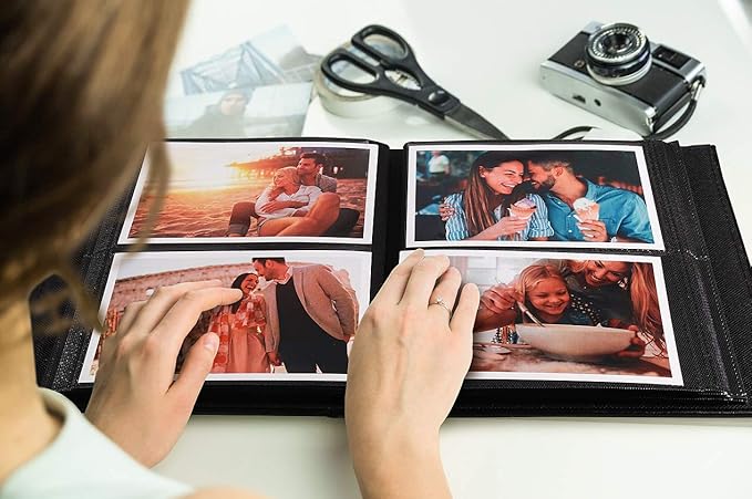 • Photo album size: it can hold 200 photos, the size is 6x4, each page can store 2 photos, the whole album size is 7x8.7 inches, 200 photo slots