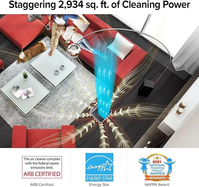 Nuwave Smart Air Purifier for Home Large Room up to 2,934 Sq. Ft., Auto Function Monitors Air Quality & Adjusts 6 Fan Speeds 5-Stage Filtration System Includes 8 Additional HEPA & Carbon Combo Filters