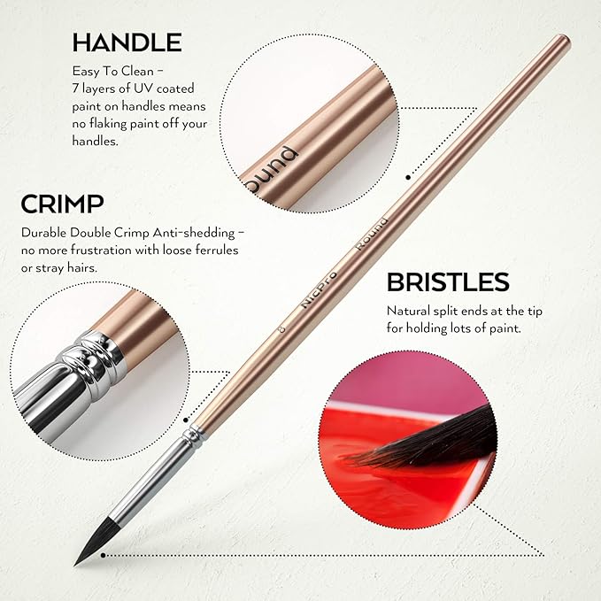 • High Quality Synthetic Squirrel brush set: Unlike other brand ,Nicpro brushes are made of synthetic squirrel, feature excellent absorption and elasticity.Secured with high quality aluminum crimped ferrules, won’t loosen or fall apart - built to last.