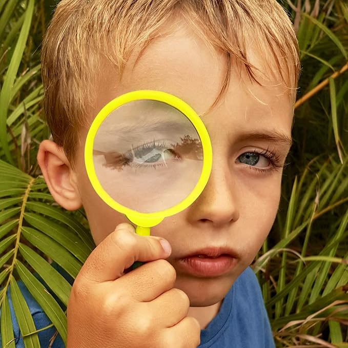 • 🔍LARGE MAGNIFYING GLASS - 3 x magnification for examining plants, insects and rocks. Wonderfully fun for camping trips and outdoor or indoor investigations. SAFE Non Choking pealess FOX WHISTLE - great for hiking, scouting, sports, games and safety locator. Clip on thick lanyard to be worn around the neck for quick access for signaling location or emergency use.