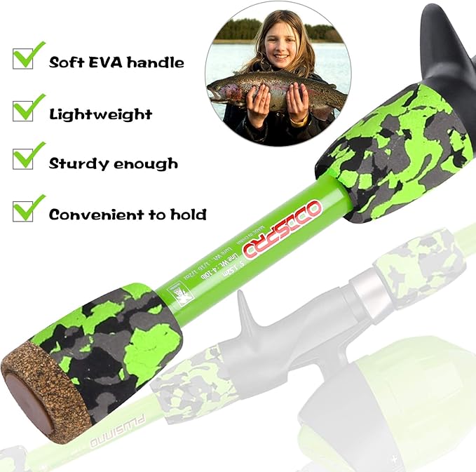 • 【 Starter Fishing Kit For Kids 】Comes with a Soft Casting Plug, with perfect size and weight, kids can cast in the backyard or on the shore to sharpen up their casting skills. An instruction manual is included, so kids beginners can quickly learn how to fish.