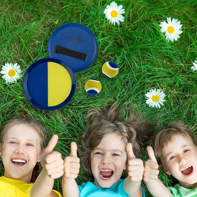 • 【Softer and High-quality Ball Set】The old version's tennis balls were very hard and lacked elasticity, making them difficult for kids to catch. Our balls are much stronger and softer, yet still have great stickiness, so kids can easily catch them and enjoy a comfortable feel. Kids won't lose their fun because they can keep catching the ball. This ball game is always lots of fun for little ones, even at family reunions.