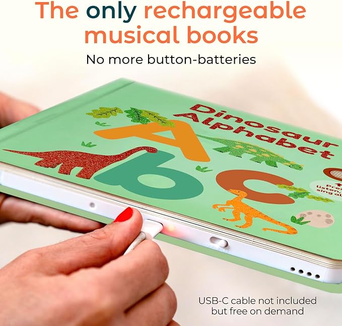 • Sing & learn with dino songs: Features an on/off button and a gentle-paced ABC dinosaur song to help kids sing along while exploring each letter. A fantastic dinosaur sound book that fosters early independence.