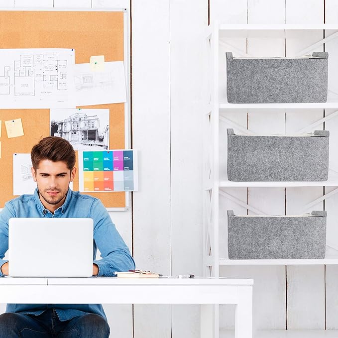 • 【Sustainable material】 Recycled felt with comfortable touch feeling, soft to prevent scratching,flexible for space saved up on desk, office ,bedroom, closet ,kitchen,bathroom or anywhere you desire with these stylish storage and organizer bins.