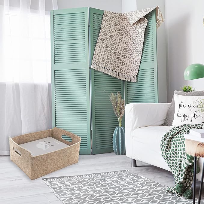 • 【Sustainable material】 Recycled felt with comfortable touch feeling, soft to prevent scratching,flexible for space saved up on desk, office ,bedroom, closet ,kitchen,bathroom or anywhere you desire with these stylish storage and organizer bins.