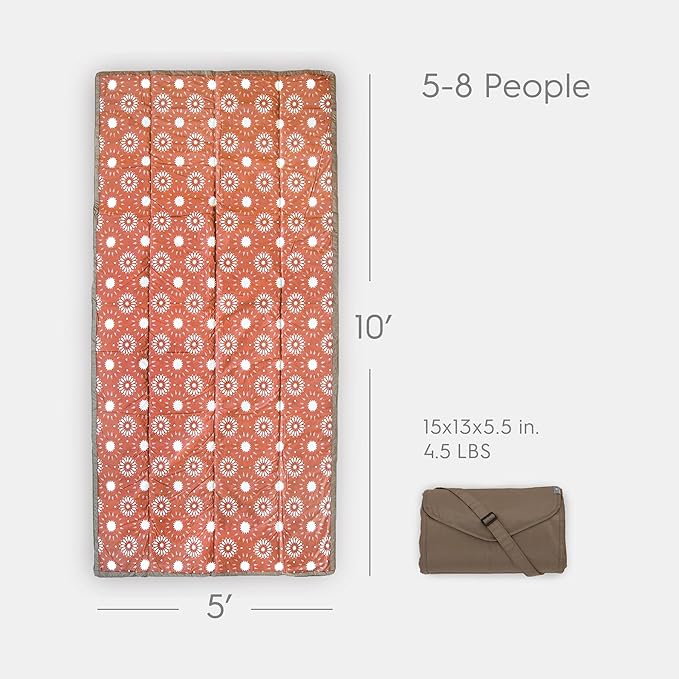 Little Unicorn 5'x10' XL Outdoor Family Picnic & Beach Blanket | Durable & Water-Resistant Fabric | Compact Fold & Easily Wipes Clean | Zipper Pocket (Sun Baked)