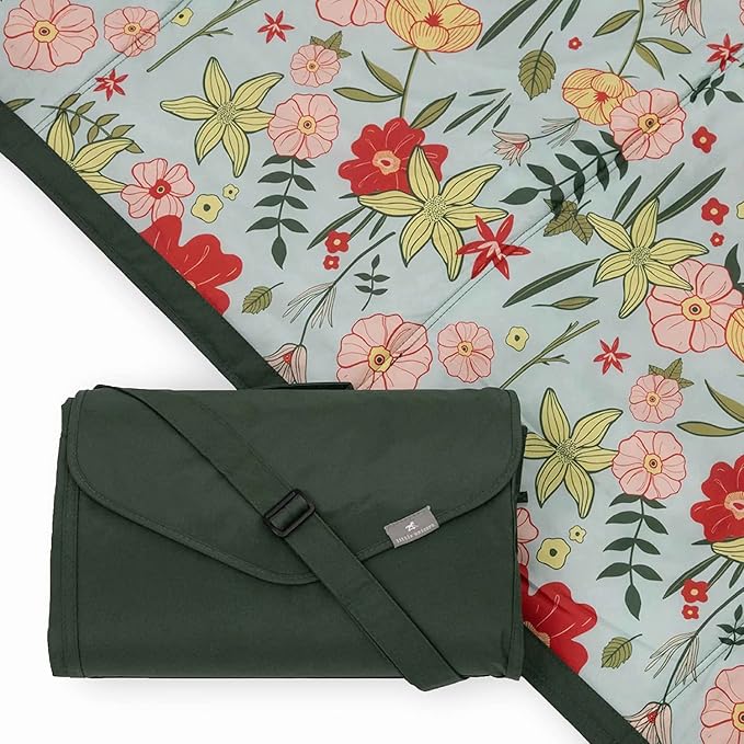 Little Unicorn 5'x10' XL Outdoor Family Picnic & Beach Blanket | Durable & Water-Resistant Fabric | Compact Fold & Easily Wipes Clean | Zipper Pocket (Primrose Patch)