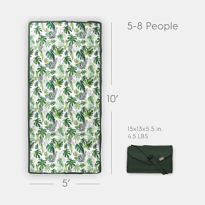 Little Unicorn 5'x10' XL Outdoor Family Picnic & Beach Blanket | Durable & Water-Resistant Fabric | Compact Fold & Easily Wipes Clean | Zipper Pocket (Tropical Leaf)