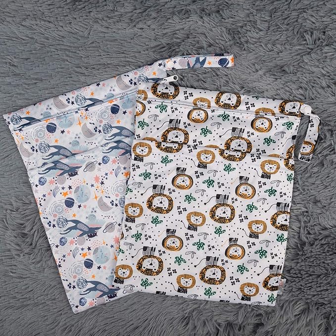 ALVABABY 2pcs Cloth Diaper Wet Dry Bags Waterproof Reusable with Two Zippered Pockets Travel Beach Pool Daycare Soiled Baby Items Yoga Gym Bag for Swimsuits or Wet Clothes LX-H358359