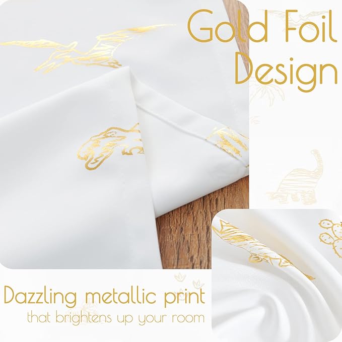 Vangao Kids Curtains White Drapes Dinosaur Curtains for Boys Kids Nursery Girls Room Golden Dino Foil Print Light Filtering Grommet Top Window Drapes 63 Inches Length 2 Panels