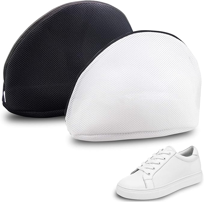 • You will receive two 10.23 x 10.23 x 16.53 in(25 x 25 x 41 cm) Laundry net Bags(one black, one white), which can wash at least one pair of shoes(Less than or equal to US size 15/EUR size 49) in each bag, washing shoes can also be done easily