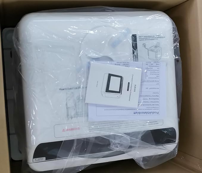 • 【SAVES ENERGY】 HAVA R01 Mini Dishwasher only consumes 5L of water per wash cycle, only 1/4 the amount used by handwashing, which reduces water consumption by 75%. Operating at 950 W, this appliance is a great energy-saving choice for every family.【NOTE】 Only use dishwasher-specific detergent. Pods, liquids, or powder detergents are all acceptable for use. Add the proper amount of detergent, about 0.2–0.3 oz, to fill the detergent dispenser.