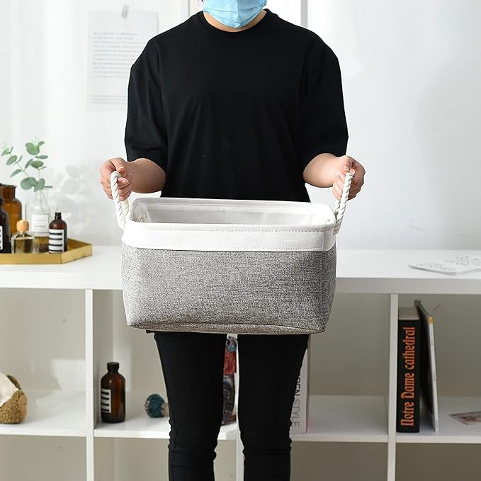 • HANDMADE STICHED & STURDY - TheWarmHome closet organizer outside fabric is made of more linen & thicken Environmental EVA, and used a lining material for the inside, Semi handmade stitched. Sturdy metal rod frame around the top keep the basket shape. Strong seams and rope side handles, make this storage baskets are sturdy and easy to grab. Stand up great on their own even unfilled and ensure a greater product lifespan.