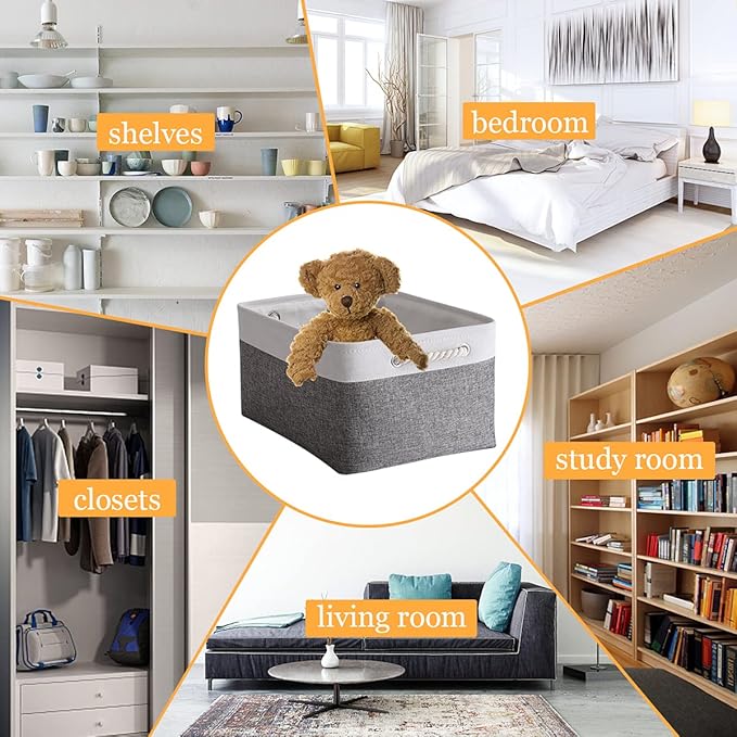 • LARGE STORAGE BIN & PROFESSIONALLY & PRACTICAL - 15.7L×11.8W×8.3H, can be used as storage baskets for shelves,closet storage bins, linen closet organizer,nursery basket storage,laundry baskets, bathroom towel storage,also can organizing baby Stuff,clothing, kid’s ,pet products, laundry, towel, bedsheet,sport gears,suitable use in bedroom, living room,study room,rest room,bathroom, kitchen,office,shelf,closet and cabinets. excellent choice for keeping your space nice,tidy and organized