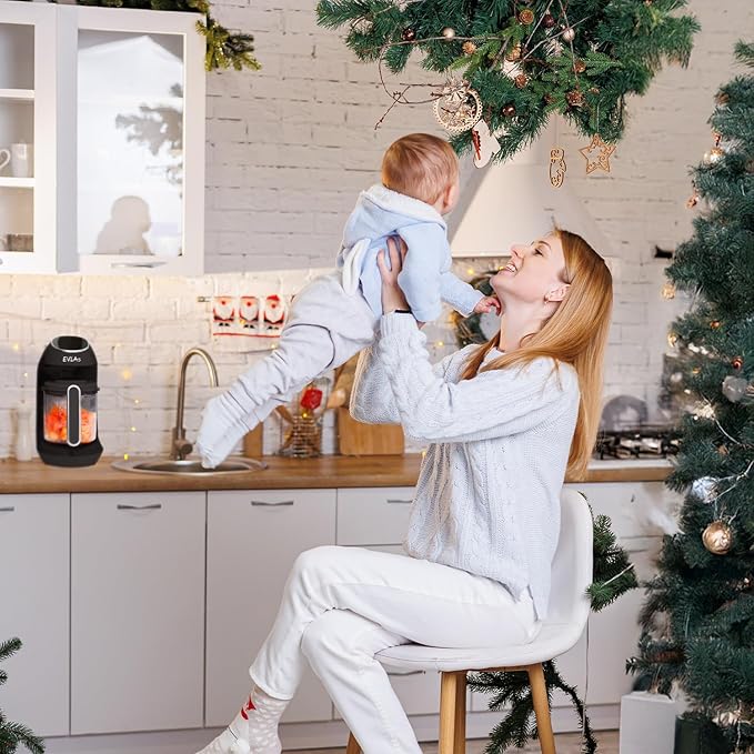 • FOOD BLENDER & STEAMER IN ONE: EVLA’S baby food maker steaming function allows you to cook ingredients well before blending, preserving their natural flavor, then puree and blend fruits, vegetables, and meats into a smooth, consistent texture.