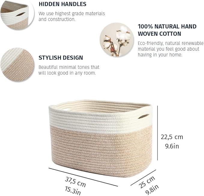 • Elegant Cotton Coiled Rope Cubes Design – A vintage feel with a modern touch these coiled rope baskets are made from tightly-woven cotton that’s strong, and more durable and resistant than regular wicker storage basket, linen closet organizers and storage baskets with lid.
