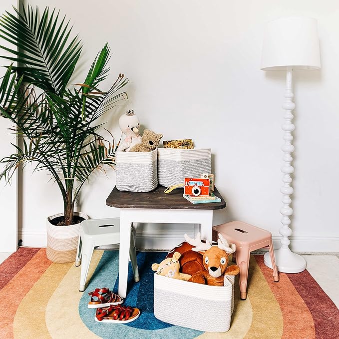 • Discrete, Built-In Carry Handles – These fabric rope baskets for storage also feature slim hand holds built right into the sides of each round basket for a seamless look that’s also functional. Perfect for picking up toys or carrying items around the house.