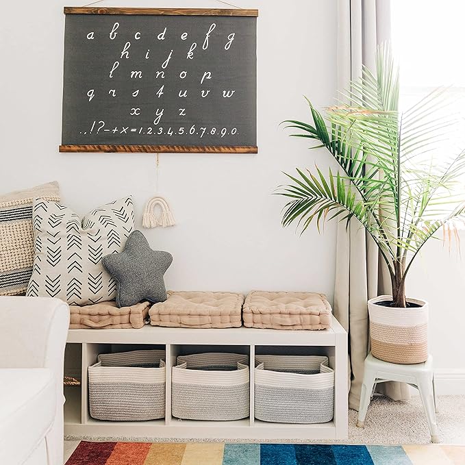• All-Purpose Cube Storage Baskets – These 15” x 10” x 9” rope storage baskets are ideal for keeping your everyday home life more organized and provide plenty of compact storage space for arts and crafts, classroom decor, kid’s toys, or nursery storage and room accessories