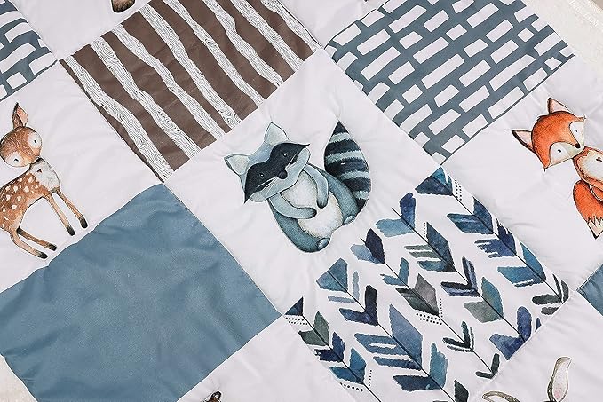 PINNKKU 3-Piece Crib Bedding Set for Boys, Includes Crib Skirt, Blanket, Sheet, Woodland Animals, Standard Size