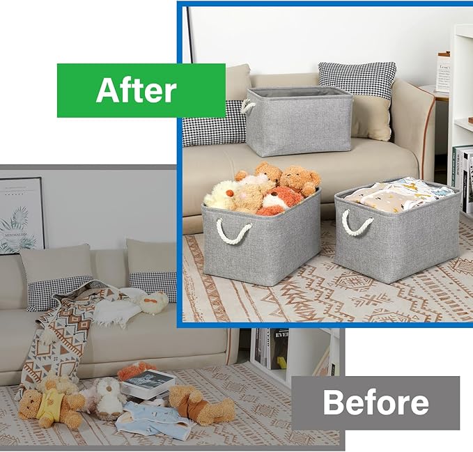 • Cotton Rope Handles and Premium Fabric: Soft handle will give you a very comfortable grip feeling, will not feel strangled hands, more easier to use the linen basket. The canvas storage bins equipped with soft and sturdy handles for moving conveniently. Sturdy soft handles on both sides are convenient to retrieve from shelves. These storage baskets are made of durable fabric which is strong and lightweight