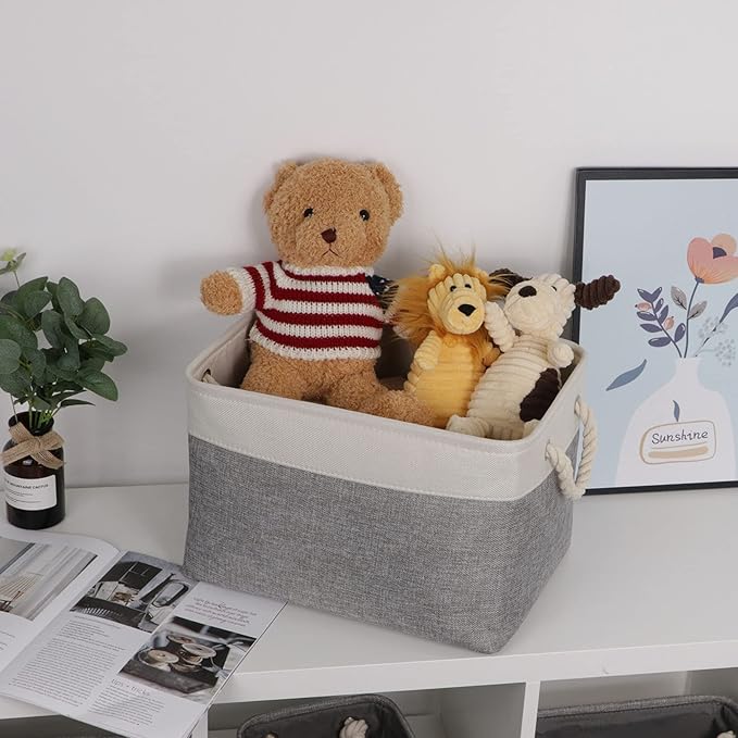 • Cotton Rope Handles and Premium Fabric: Soft handle will give you a very comfortable grip feeling, will not feel strangled hands, more easier to use the linen basket. The canvas storage bins equipped with soft and sturdy handles for moving conveniently. Sturdy soft handles on both sides are convenient to retrieve from shelves. These storage baskets are made of durable fabric which is strong and lightweight