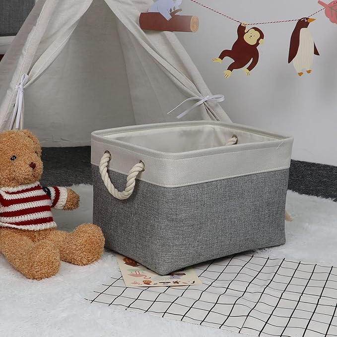 • Set of 3 Large Storage Baskets: The size of each fabric storage basket is 15 x 11 x 9.5 inches. Each Canvas storage bins weighs about 0.7 pounds and can be very light to transport items with less effort. Children can also easily transport their toys. Perfectly fit for most cube organizers, shelves closets or baby change tables. Sturdy and soft fabric baskets for home storage with good abrasion resistance