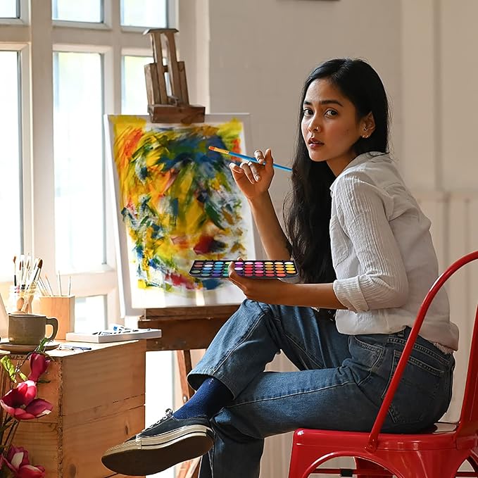 • Perfect High-Quality Water Paint Supplies -- Blablaovy use elevated concentration of finely ground top permanence rating and durability pigments, make our solid watercolor paints will not crack. They are easy to blend colors, washable and dry fast , fading resistant and have excellent fluid, and there's no chalky or grainy feel to them after they are dry, is an ideal arts & crafts supply choice for outdoor sketching, scrapbooking, creative interactive classroom activities, scho