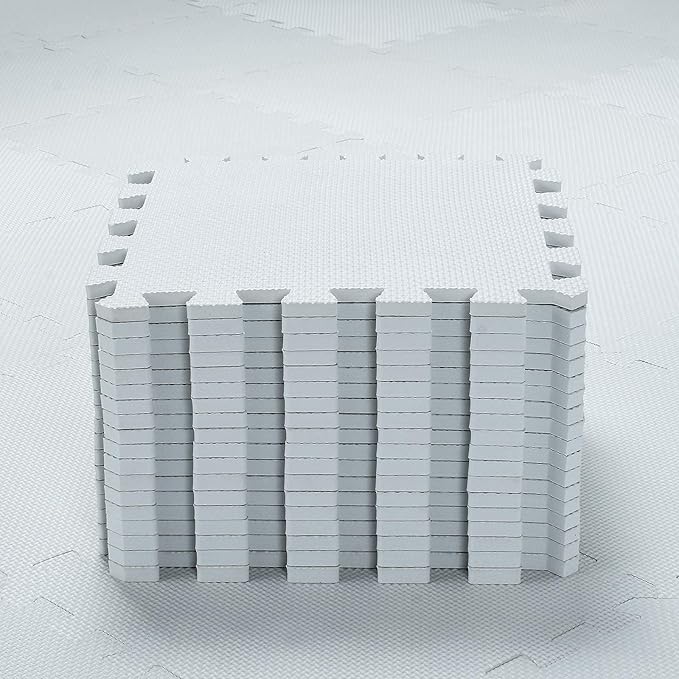 qqpp EVA Rubber 18 Tiles Interlocking Puzzle Foam Floor Mats - Baby Play Mat for Playing | Exercise Mat for Home Workout. White. QC-Ab18N